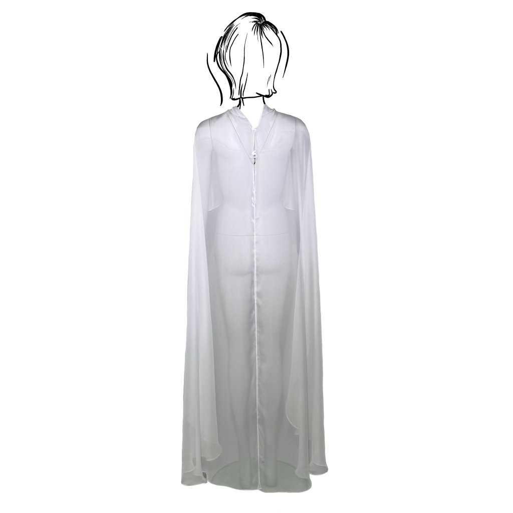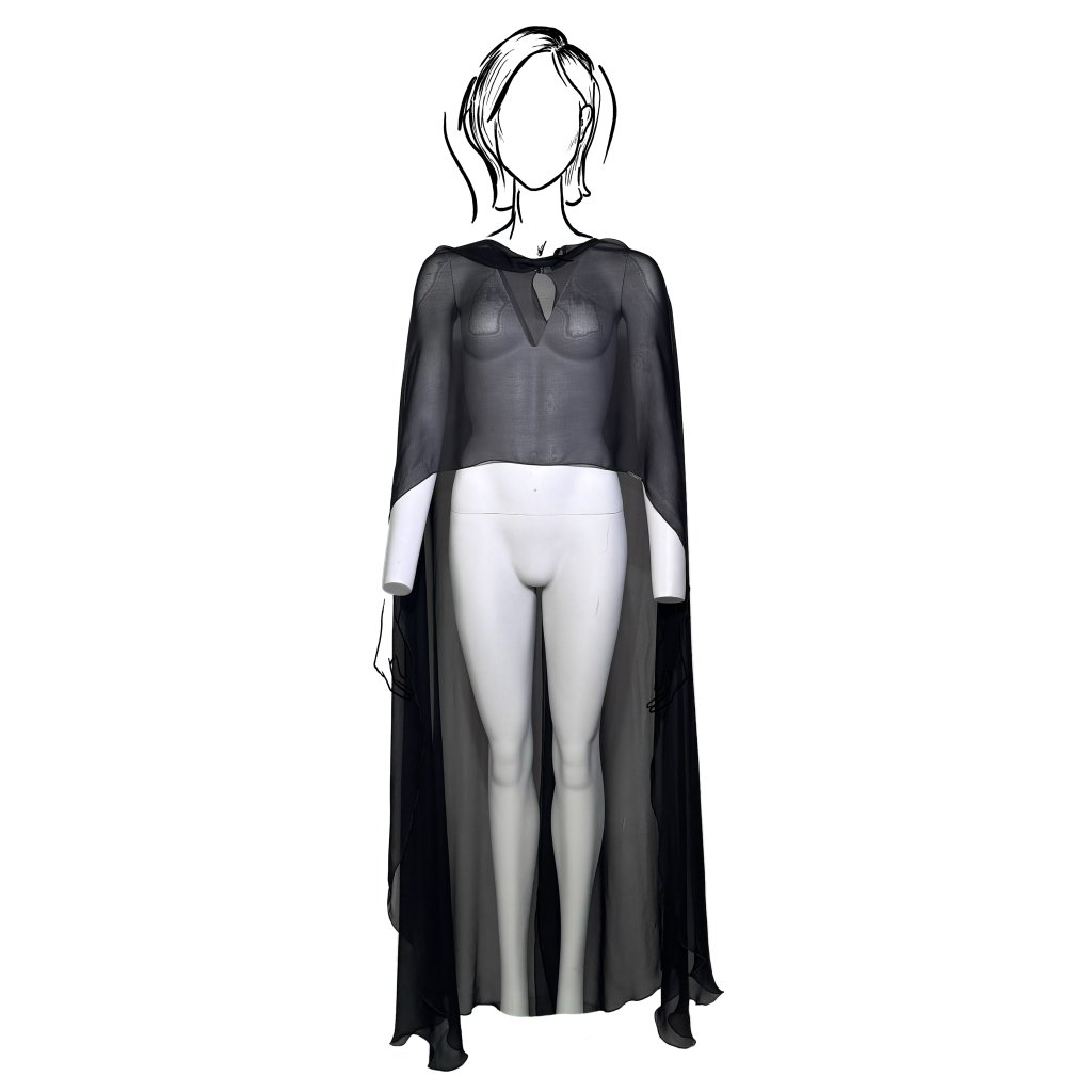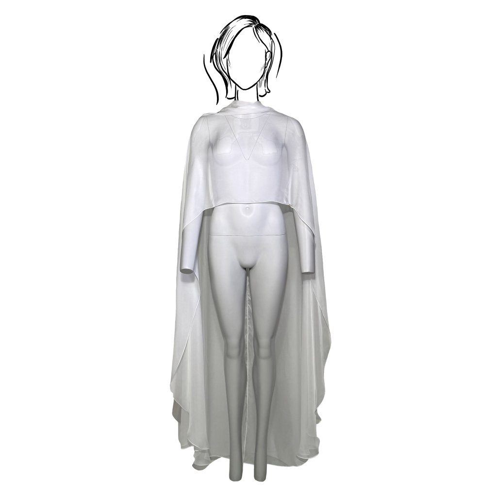 The back fastening with two small buttons ensures easy dressing and comfortable wear. The veil can be effortlessly draped over a dress, top, or blouse, instantly creating a more sophisticated, festive, or visually striking look.