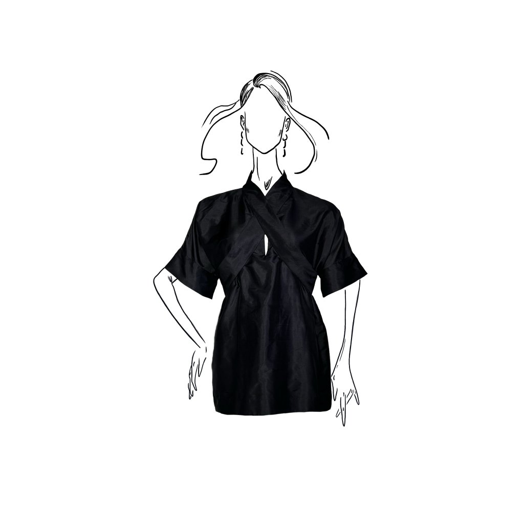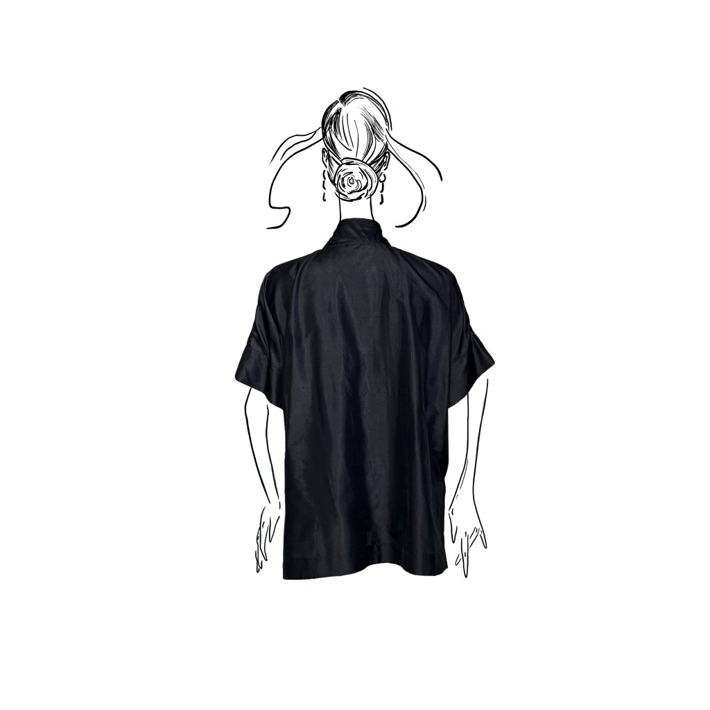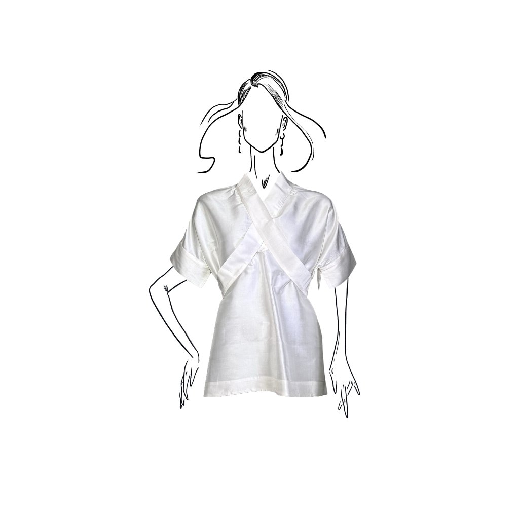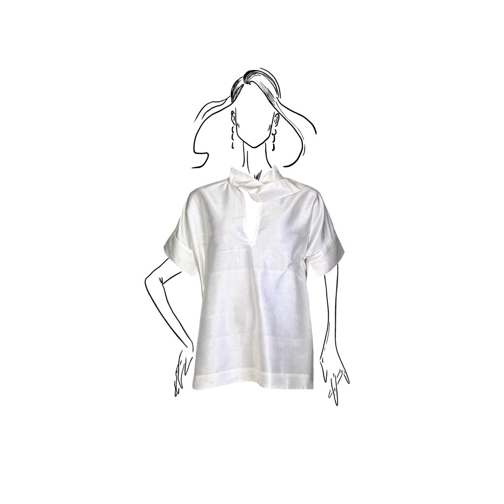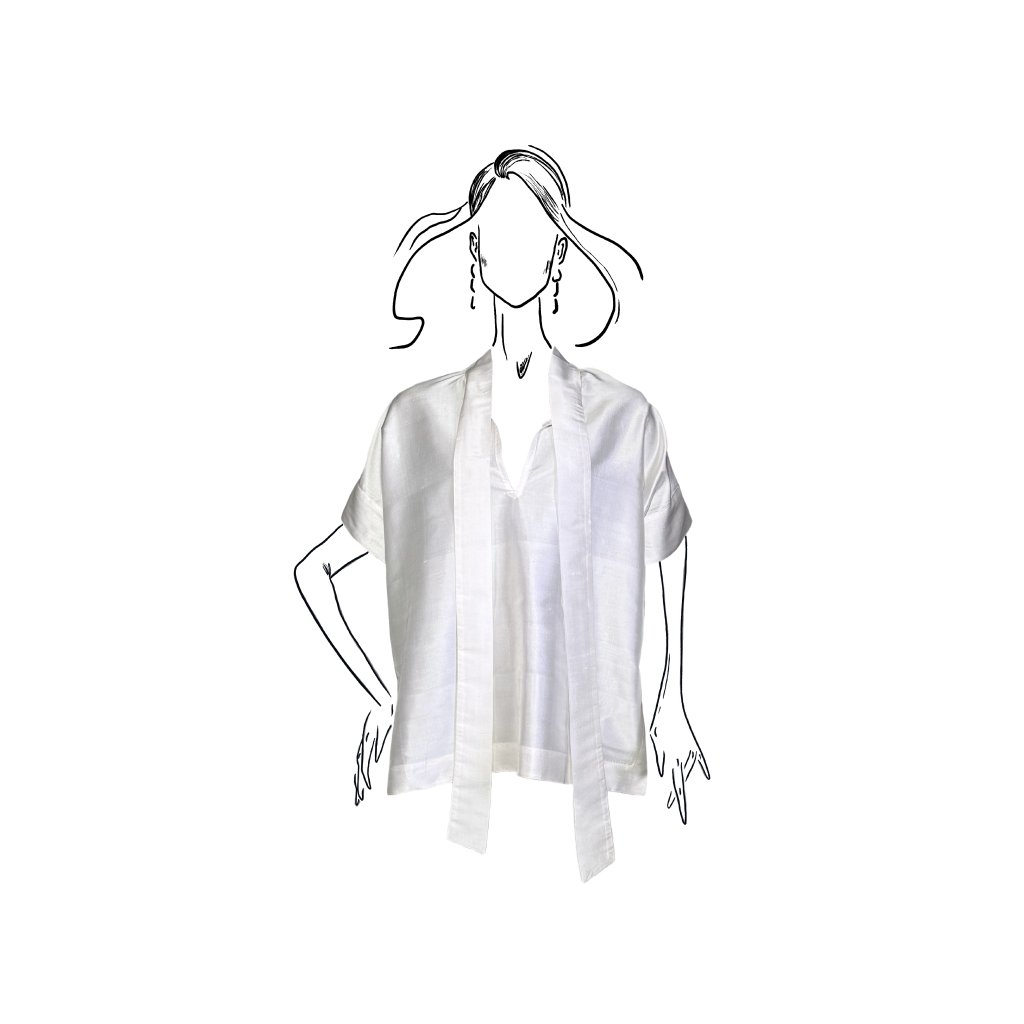 The versatile One Size blouse is made from exceptional mulberry silk sourced from a traditional family workshop in the Indian state of Assam. The hand-crafted silk gives each piece a unique character.