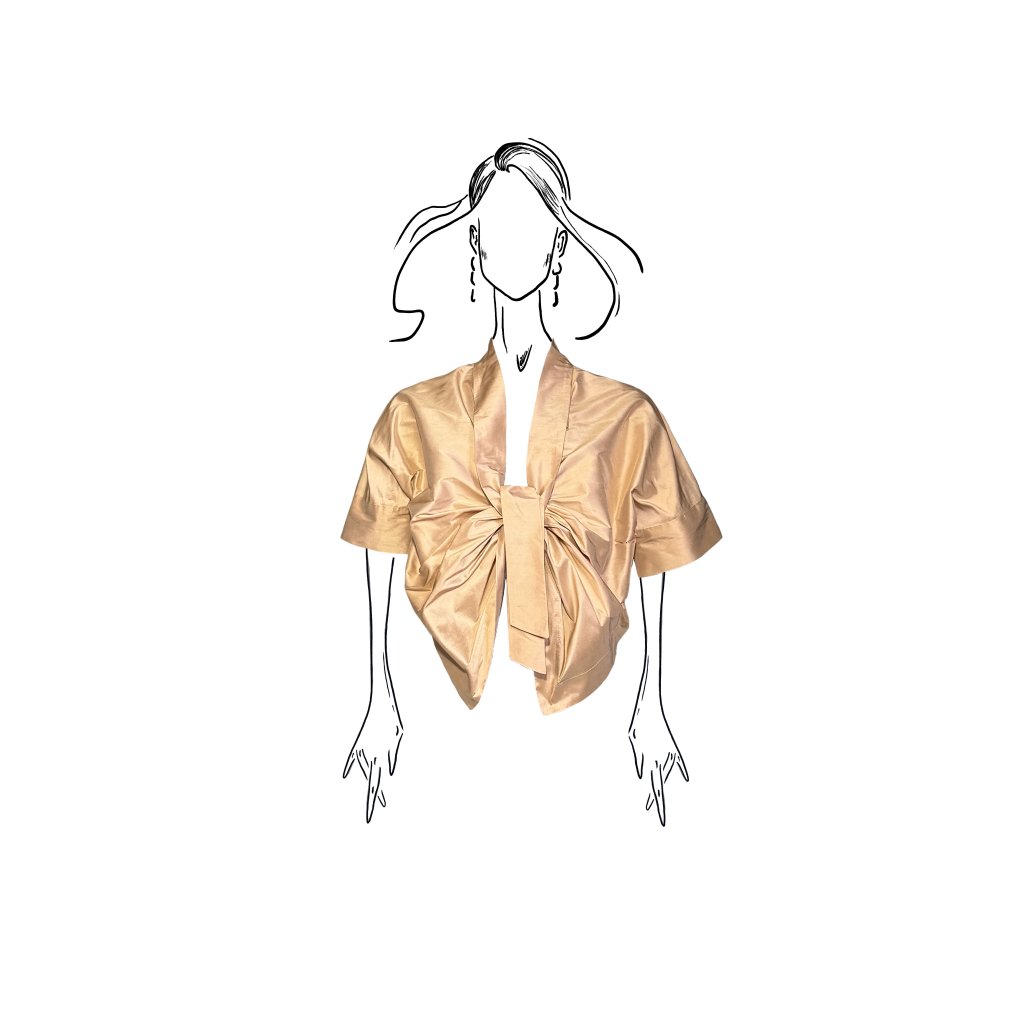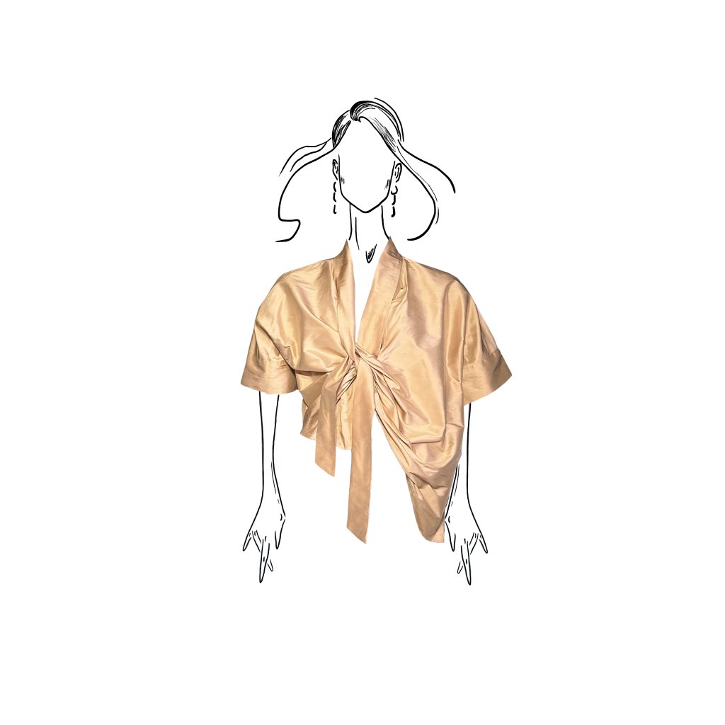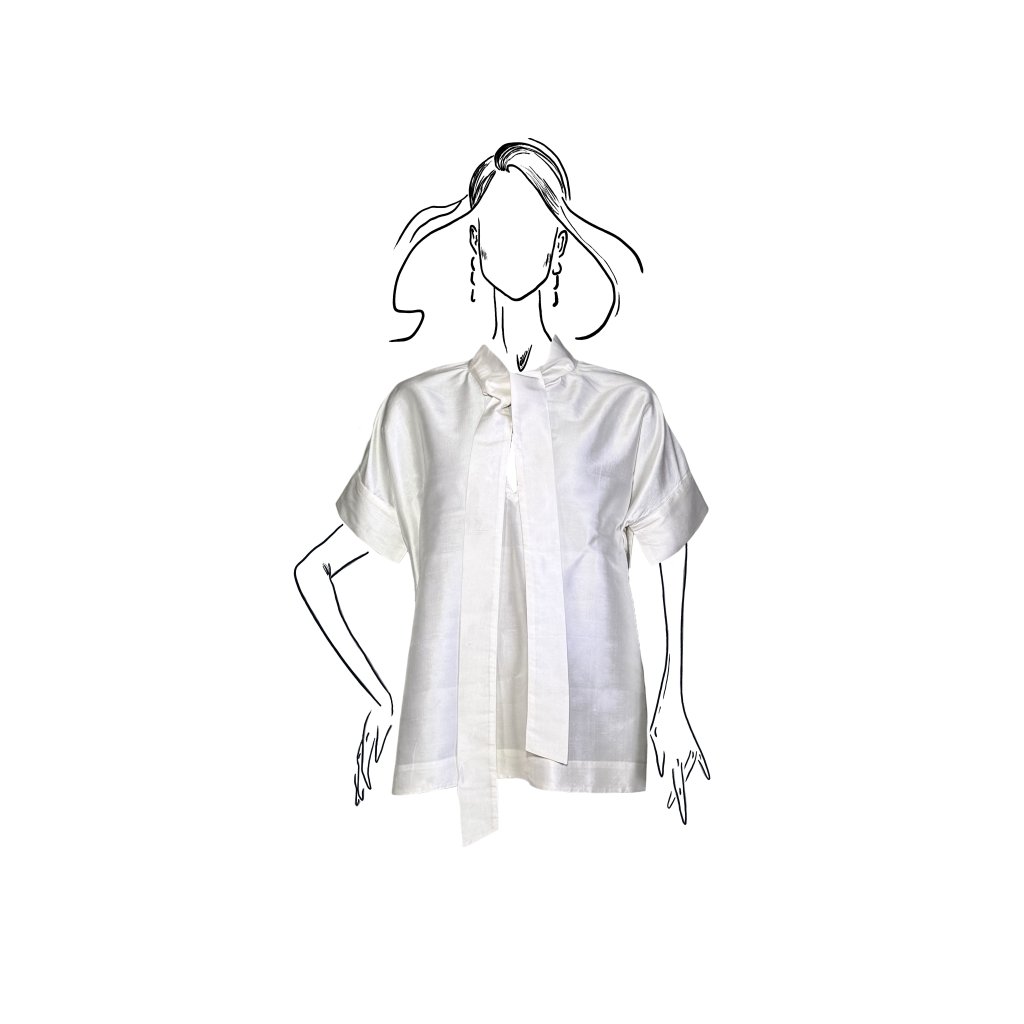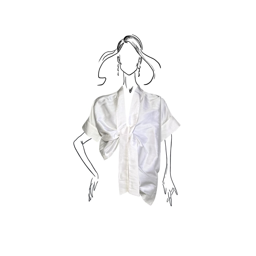 Thanks to its cut, the One Size blouse embodies practical, modern elegance. It is crafted from exceptional mulberry silk—one of the finest silks in the world—sourced from a traditional family-run workshop in the Indian state of Assam.