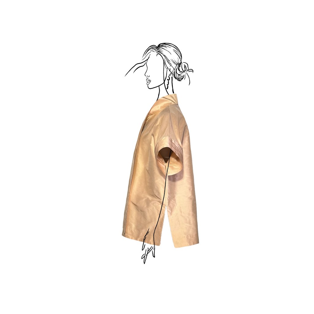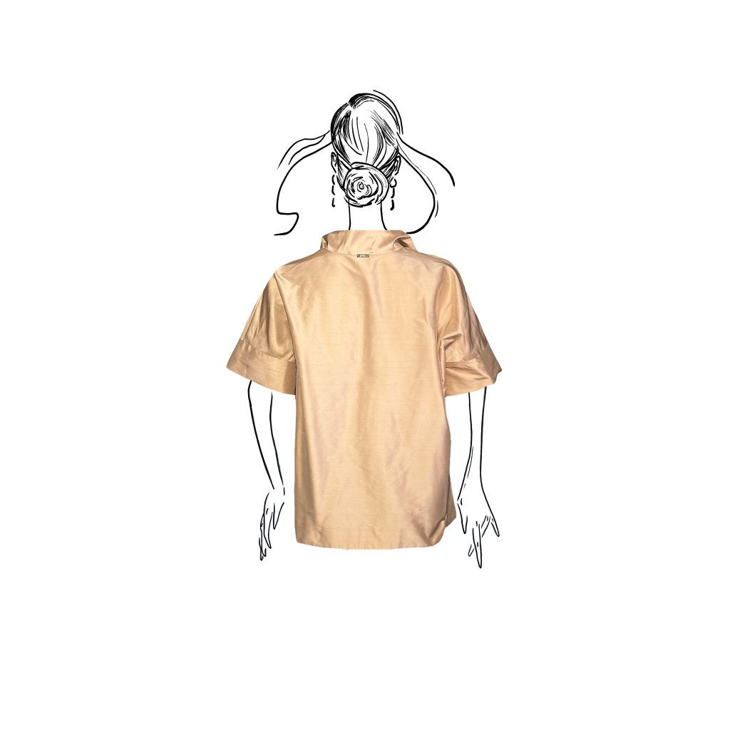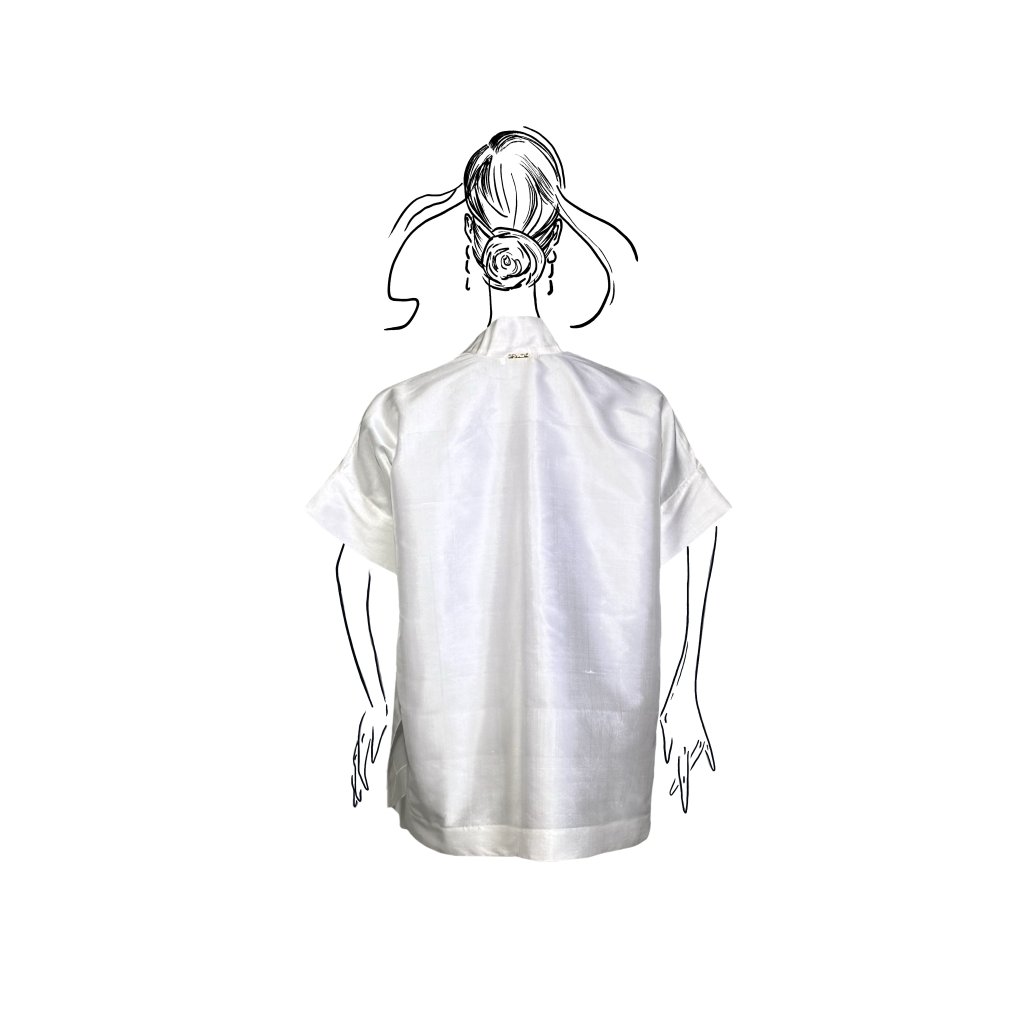 This silk is hand-produced, making each individual piece truly one of a kind. The quality of the material reflects artisanal precision, tradition, and extraordinary care in processing. Only the finest and highest-quality silk fibers are used, giving the blouse its distinctive texture, subtle sheen, and exceptional feel when worn. The result is a piece that combines timeless design with authentic craftsmanship and luxury material in its purest form.