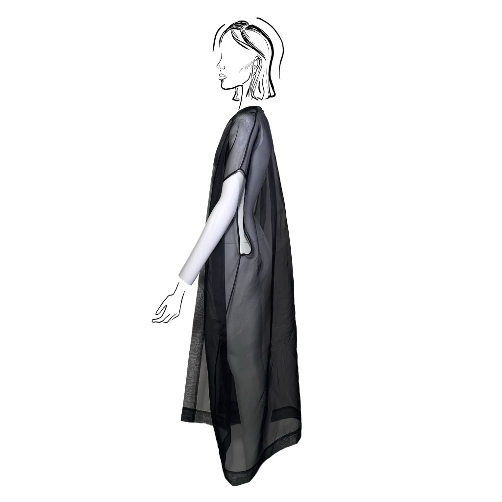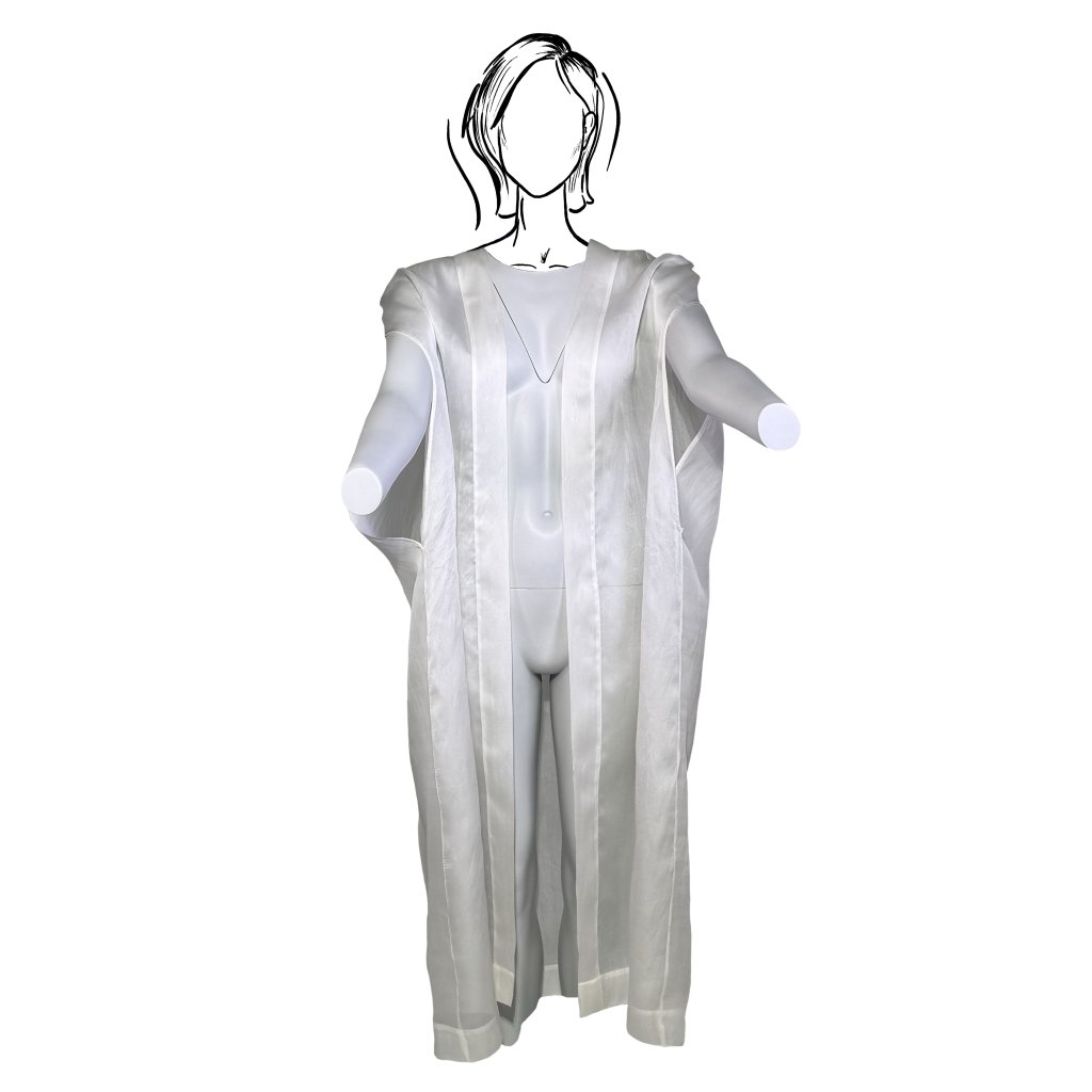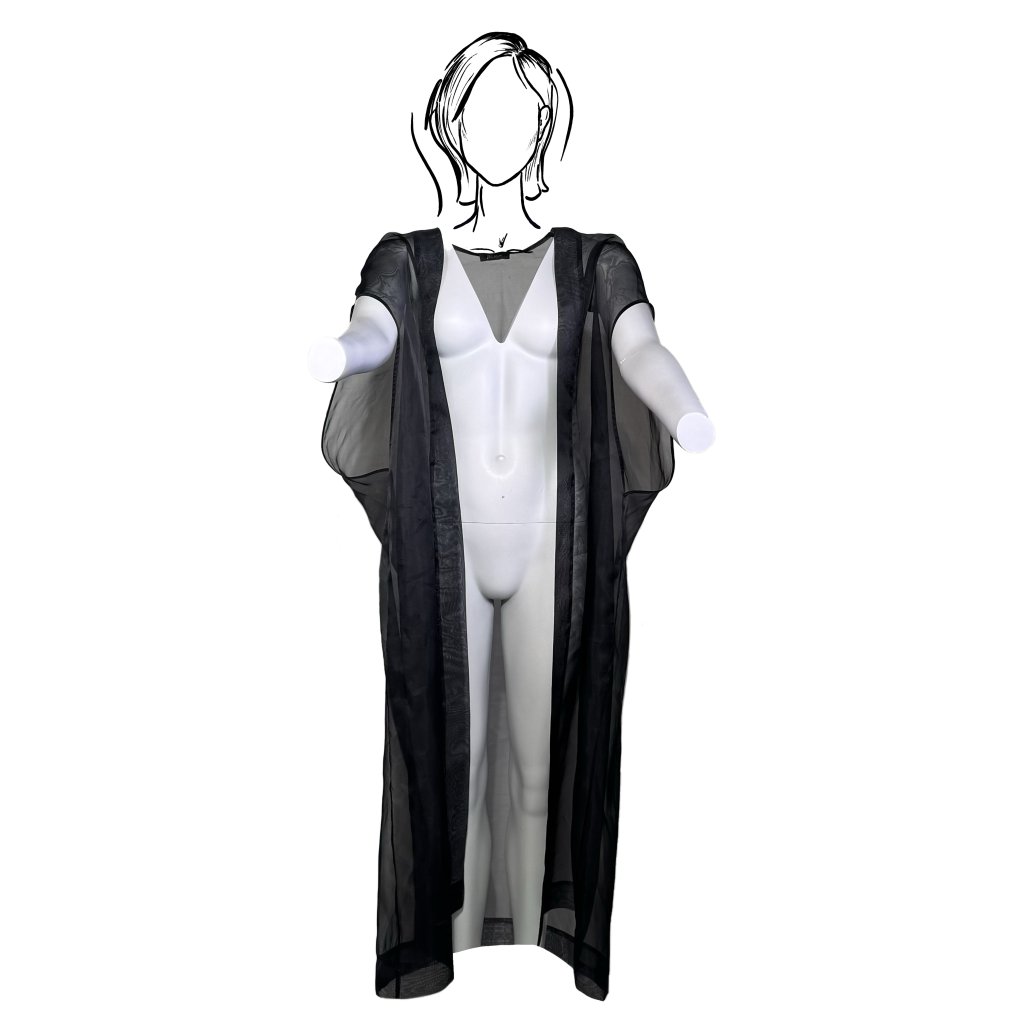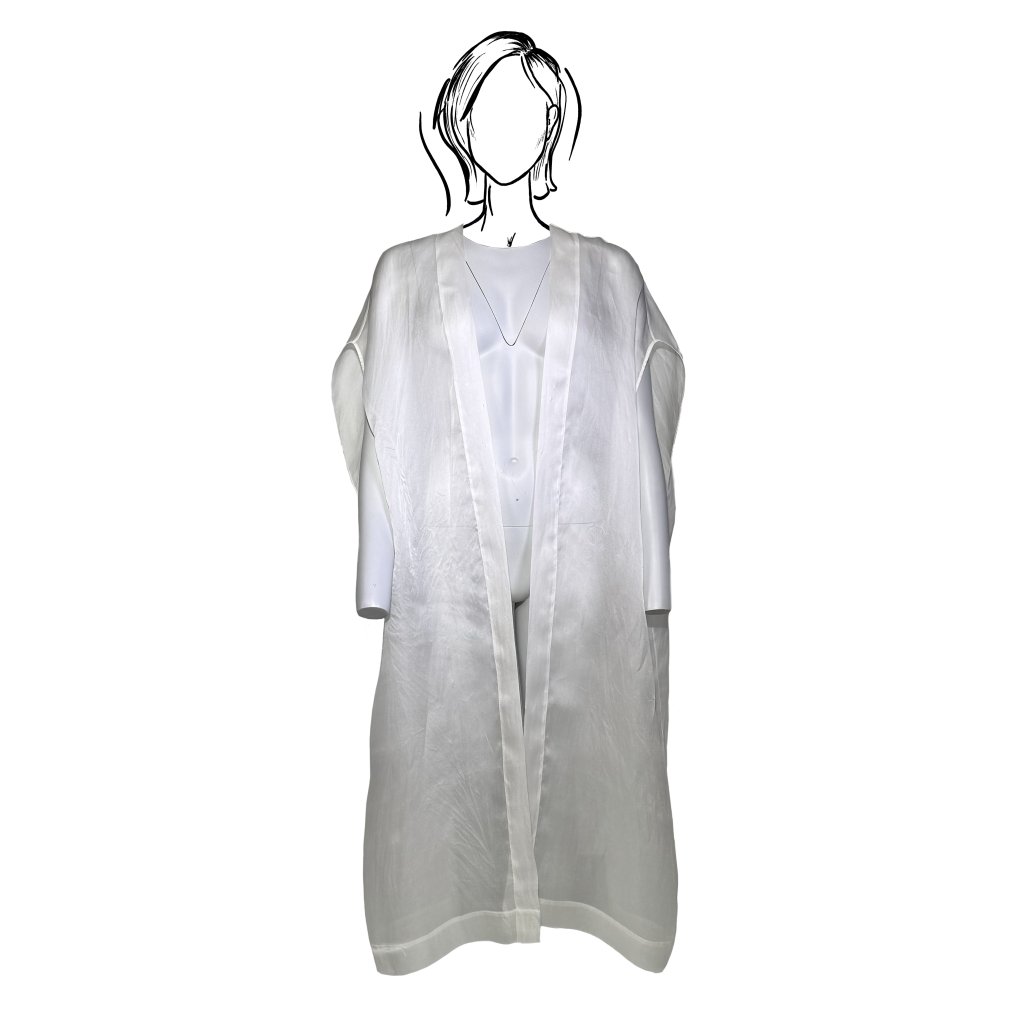 Thanks to the structured coarseness of organza silk and its natural transparency, this coat can instantly elevate any outfit, adding a striking silhouette and unique volume. It becomes not only an elegant layering piece but also a strong design statement that brings originality, structure, and unmistakable character to the overall styling—ideal for women who love combining materials and experimenting with layering.
